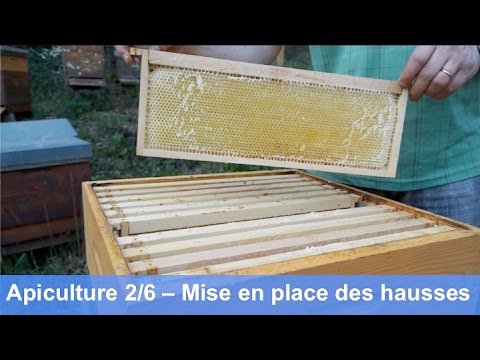 Dans la vidéo, l’apiculteur bio Thomas Amlser mets les hausses en place,
